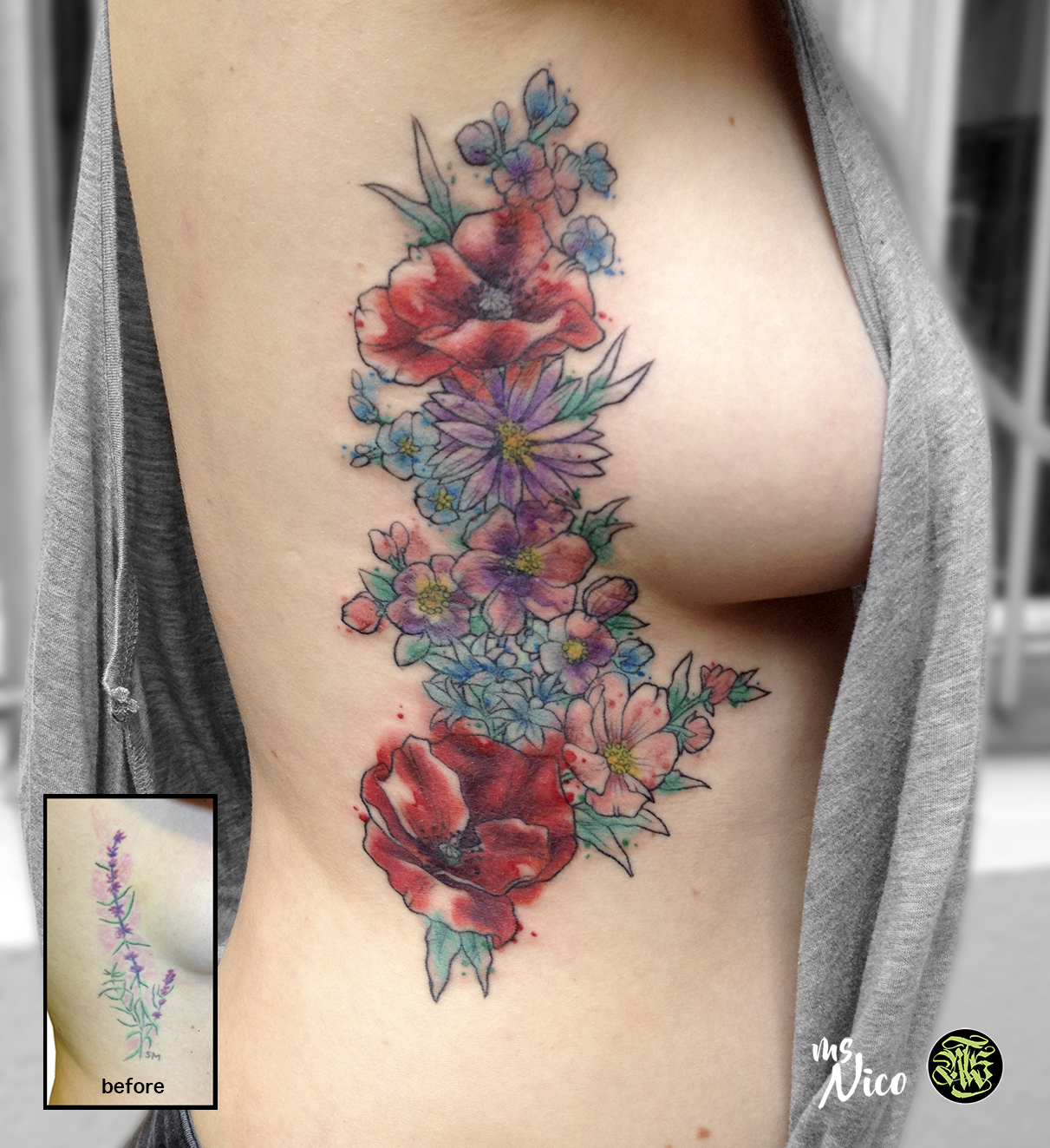 Flower Rib Tattoos : 54 Unique Rib Tattoos Designs And Ideas : Hibiscus flowers tattoos on rib side do not always large and extensive.. 3d butterfly and flower temporary tattoo on shoulder. As with shoulder tattoos, a major bonus of choosing a flower on your thigh is that the tattoo can be hidden. Colorful butterfly and flower tattoo on right back shoulder. Some female celebrities have flower rib picture designs on their lower back, while there are some who have it on their shoulders or. See more ideas about tattoos, flower tattoo on ribs, rib tattoo.